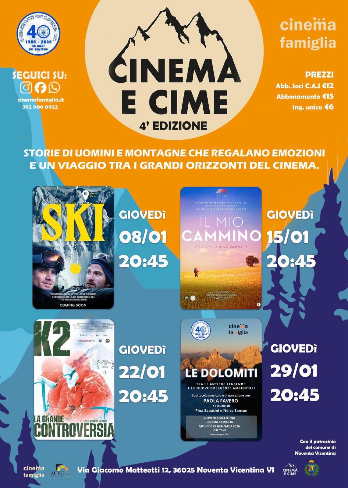 In occasione dei 40 anni della Sottosezione CAI di Noventa Vicentina, in collaborazione con Cinema Famiglia Noventa Vicentina e con il Patrocinio del Comune di Noventa Vicentina,