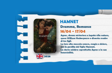 Proiezione del film HAMNET (inizio ore 16:30 e 20:45)