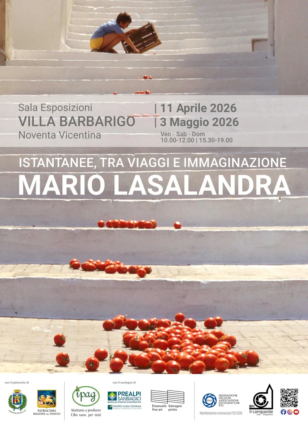 La Sala Esposizioni di Villa Barbarigo a Noventa Vicentina ospiterà, in anteprima Nazionale, dall’11 aprile al 3 maggio 2026, la mostra fotografica, proposta dal Club Fotografico Il Campanile BFI, realtà associativa con 30 anni di attività nel territorio, dal titolo “Istantanee, tra viaggi e immaginazione” di Mario Lasalandra, un percorso visivo che accompagna il visitatore tra luoghi, ma soprattutto vede protagoniste  le persone che sono sempre state al centro delle sue immagini. Mario Lasalandra è nato ad Este (Padova) nel 1933, è uno degli autori più innovativi e geniali della fotografia contemporanea, Maestro della Fotografia, ha tenuto mostre personali nelle più importanti città italiane e ha partecipato a esposizioni collettive in tutto il mondo. Nel 2006 ha esposto il suo lavoro, “Poeti, Maschere, Attori e Fantasmi” in Villa Barbarigo di Noventa Vicentina e nel 2009, e un’Antologica dal 1963 al 2008, fotografie che sono i suoi punti fermi del…